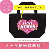 [名入れ]花柄 ハート型 アイラブ I LOVE お散歩バッグ(小)/名前入れ/エコバッグ/名入れバッグ/トートバッグ 全4色 (ブラック)